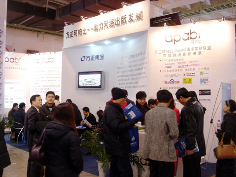 今年已經(jīng)是方正阿帕比連續第七年參加圖書(shū)訂貨會(huì )了。還記得第一次參加圖書(shū)訂貨會(huì )時(shí),方正阿帕比用一個(gè)網(wǎng)絡(luò )出版解決方案的PPT,向出版社推廣網(wǎng)絡(luò )出版的概念。轉眼就是七年,通過(guò)不懈的努力,阿帕比已與400多家出版社、500多家地面書(shū)店、2900多家圖書(shū)館、30多家知名網(wǎng)站達成合作。今天,阿帕比向人們展示的網(wǎng)絡(luò )出版已不再只是一個(gè)概念。在展臺上,參觀(guān)者可以通過(guò)電腦、手持閱讀器等閱讀終端設備“翻閱”一本本圖文并茂的“圖書(shū)”,更加直觀(guān)的了解阿帕比在網(wǎng)絡(luò )出版方面所能提供給出版社、作者、讀者的技術(shù)和服務(wù)。