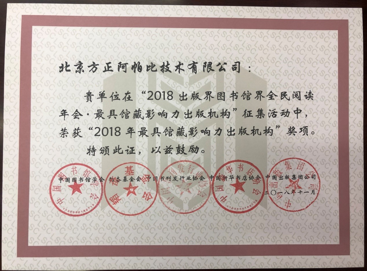 方正阿帕比再獲“最具館藏影響力出版機構”