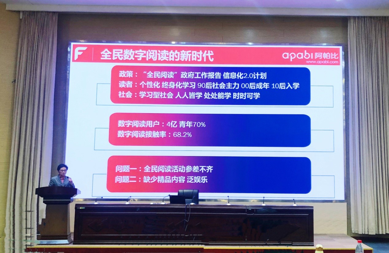 在本次會(huì )議上,方正阿帕比經(jīng)營(yíng)中心魏丕發(fā)表了《新時(shí)代的全民數字閱讀——“讀+”計劃》的主題演講。